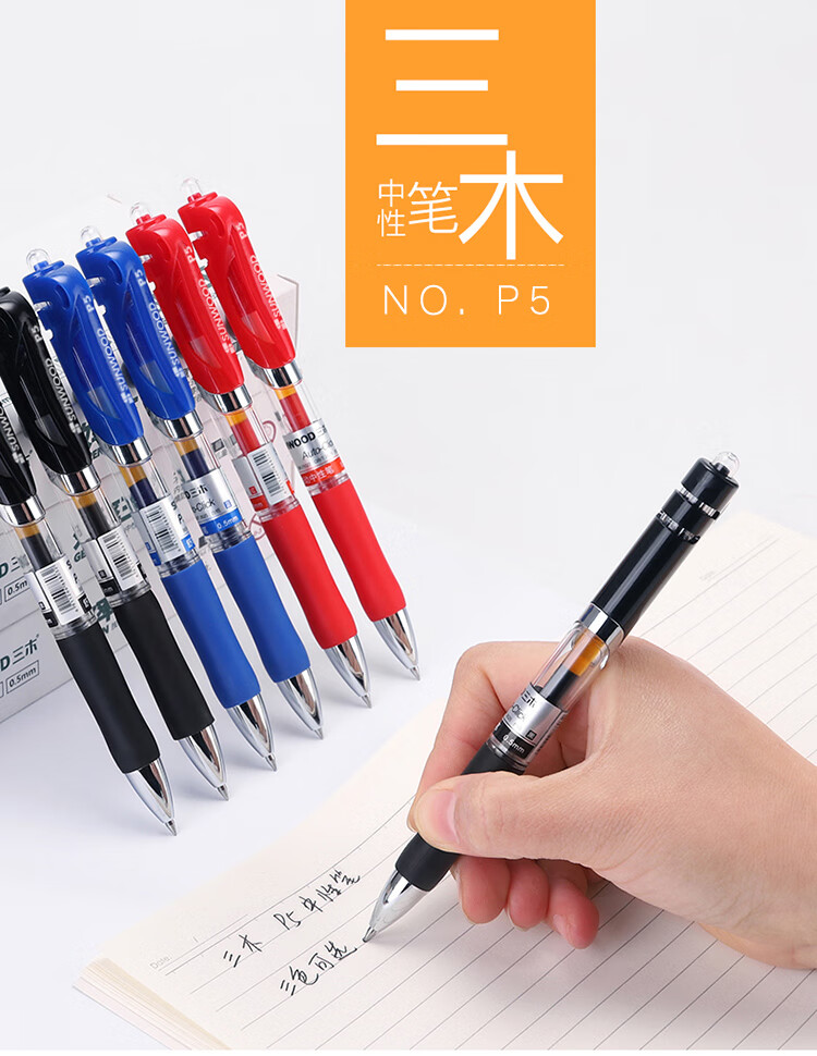 商品名称:三木 P5 按动子弹头中性笔 红 0.5mm 12支/盒 (计价单位:盒) 商品编号:196661434 品牌:三木 上架时间: 商品毛重:170克